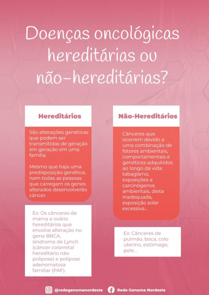 Para compreender a essa questão é preciso estudar o genoma de pacientes com câncer e entender que alguns fatores genéticos associados ao desenvolvimento e a gravidade do câncer podem ser transmitidos por gerações.